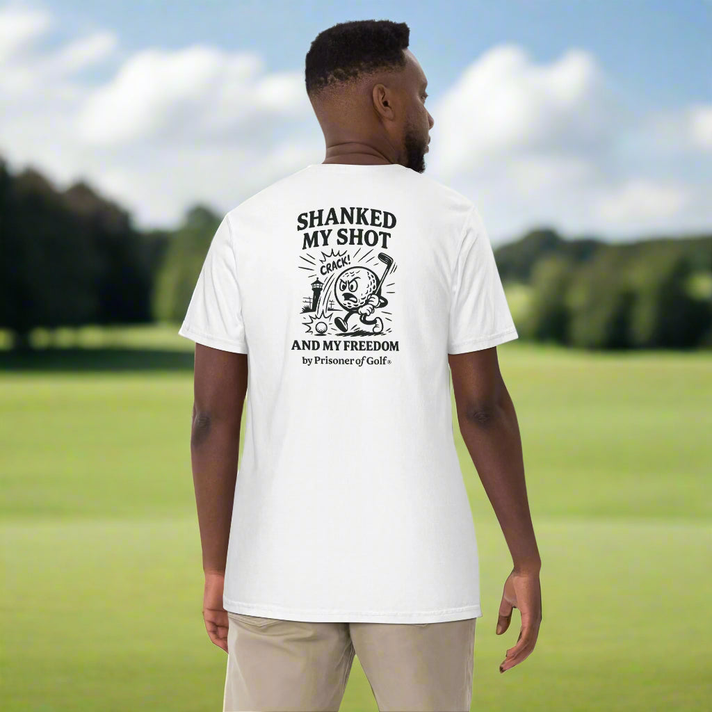 “Shanked My Shot” printed on the back is part self-awareness, part therapy, and part badge of honor for the tortured souls who keep coming back for more.
