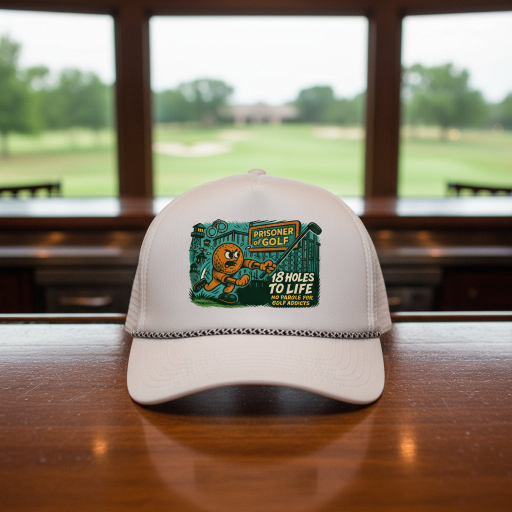 The 18 Holes to Life hat is for the lifers—those sentenced to the fairways with no chance of parole. It’s more than a round; it’s your reality. This hat makes your conviction clear, with bold embroidery that says what we’re all thinking (but still love): you’re never getting out.