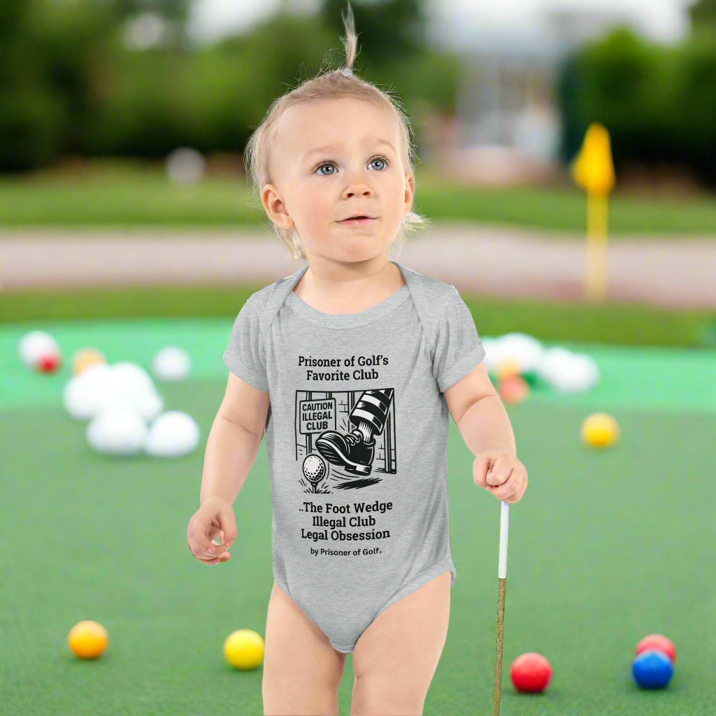 The Foot Wedge bodysuit is perfect for the baby whoâs already learning the âunwritten rulesâ of golf. Whether theyâre crawling through the clubhouse or napping in the cart, this ultra-soft onesie brings humor, comfort, and early signs of questionable ethics to your babyâs wardrobe.
