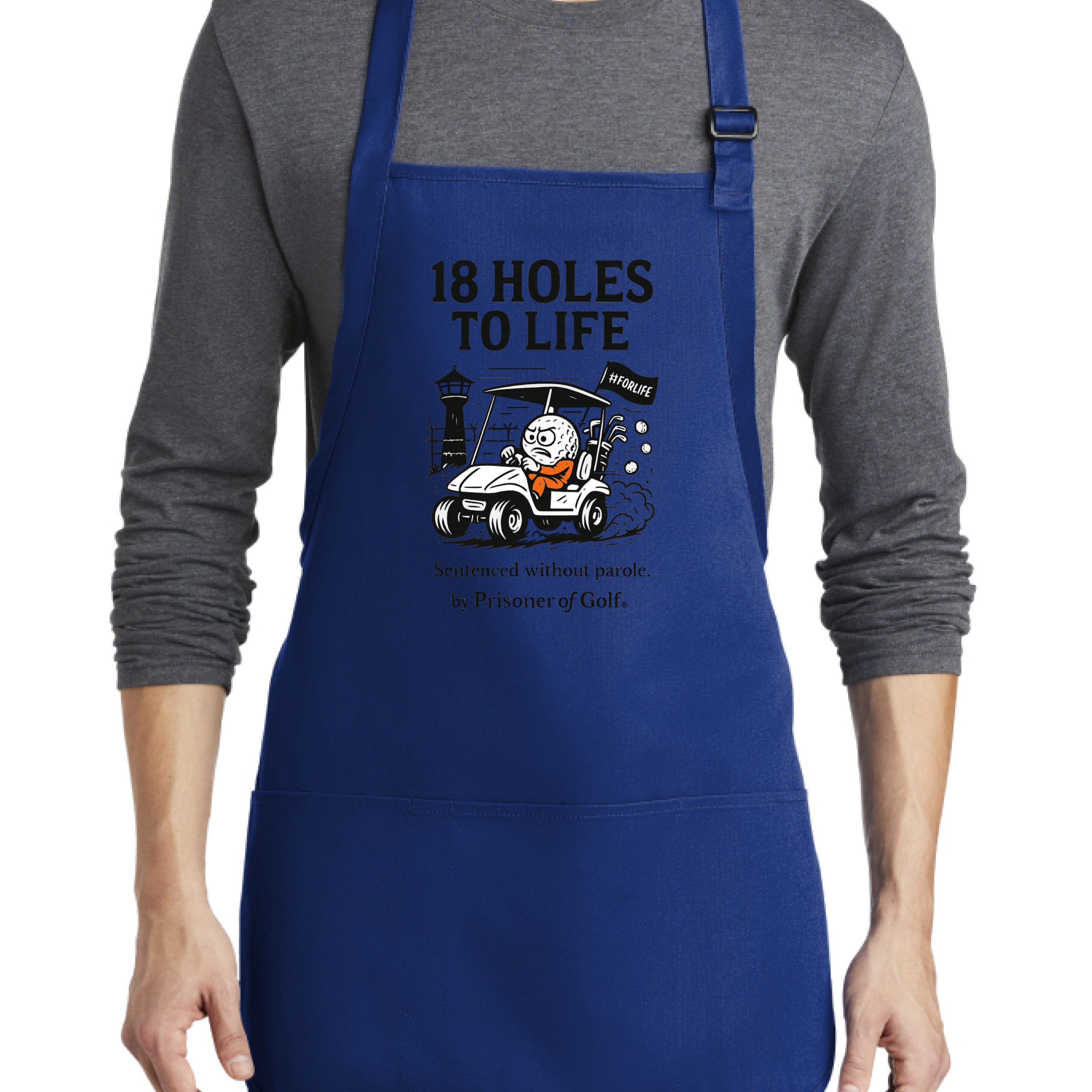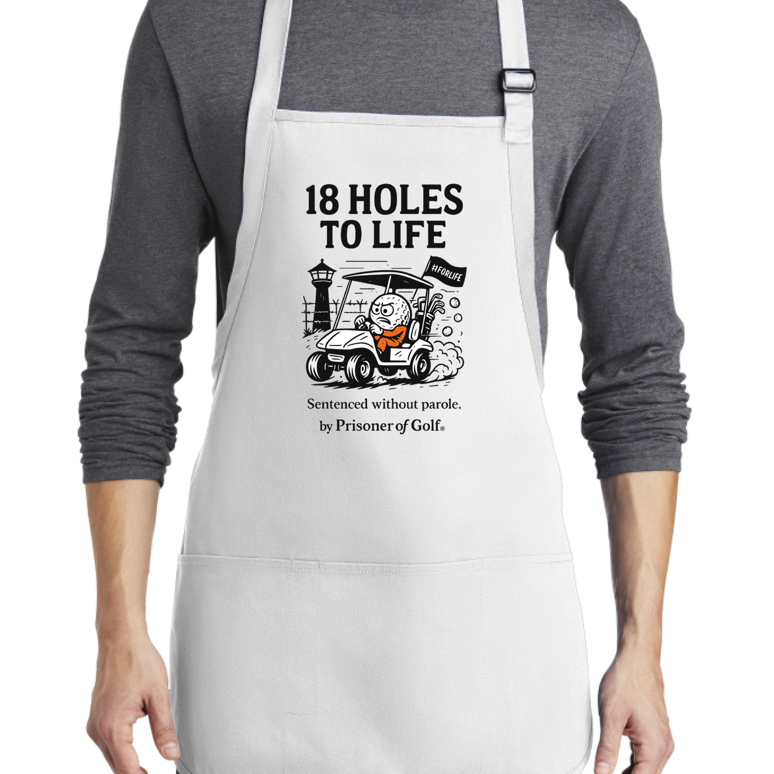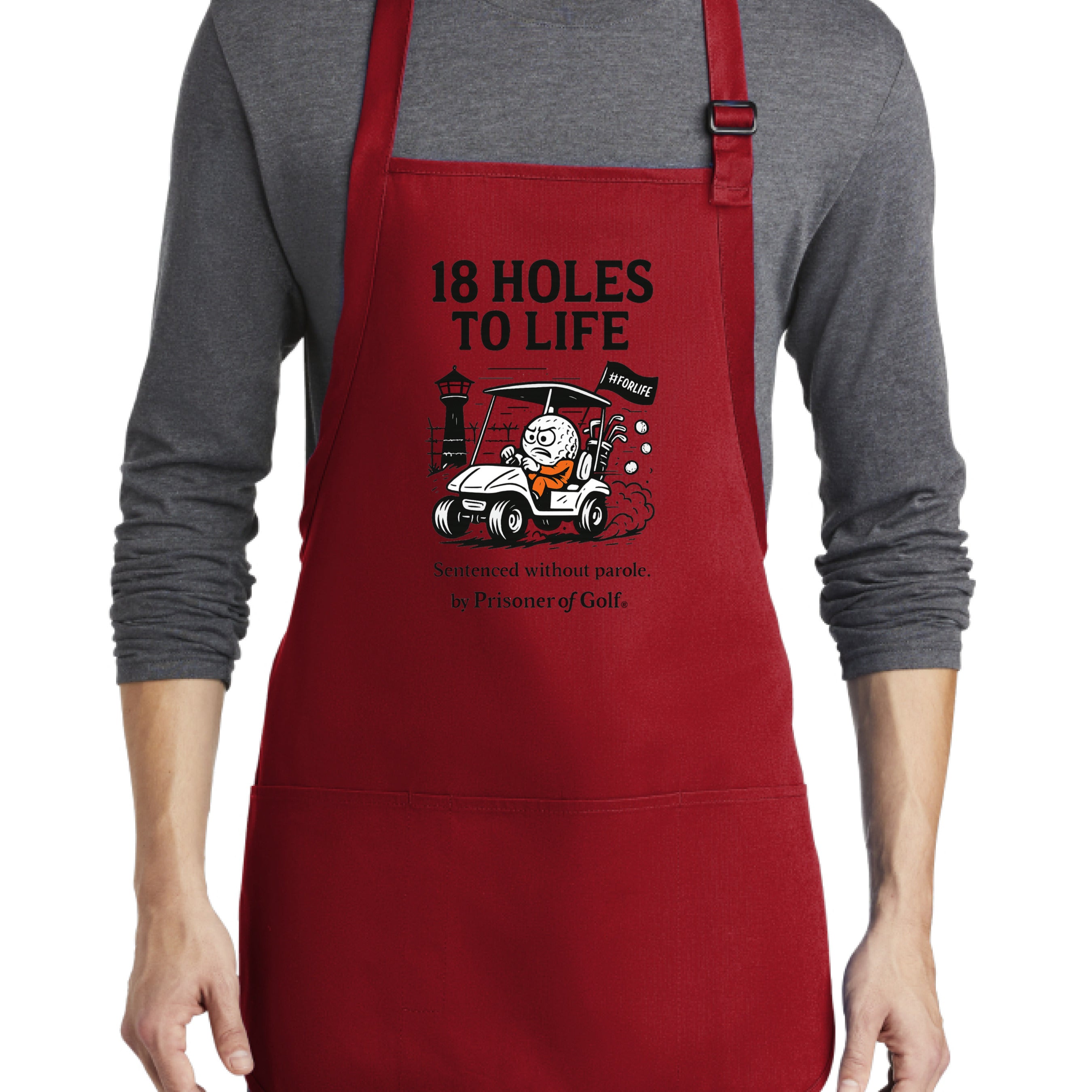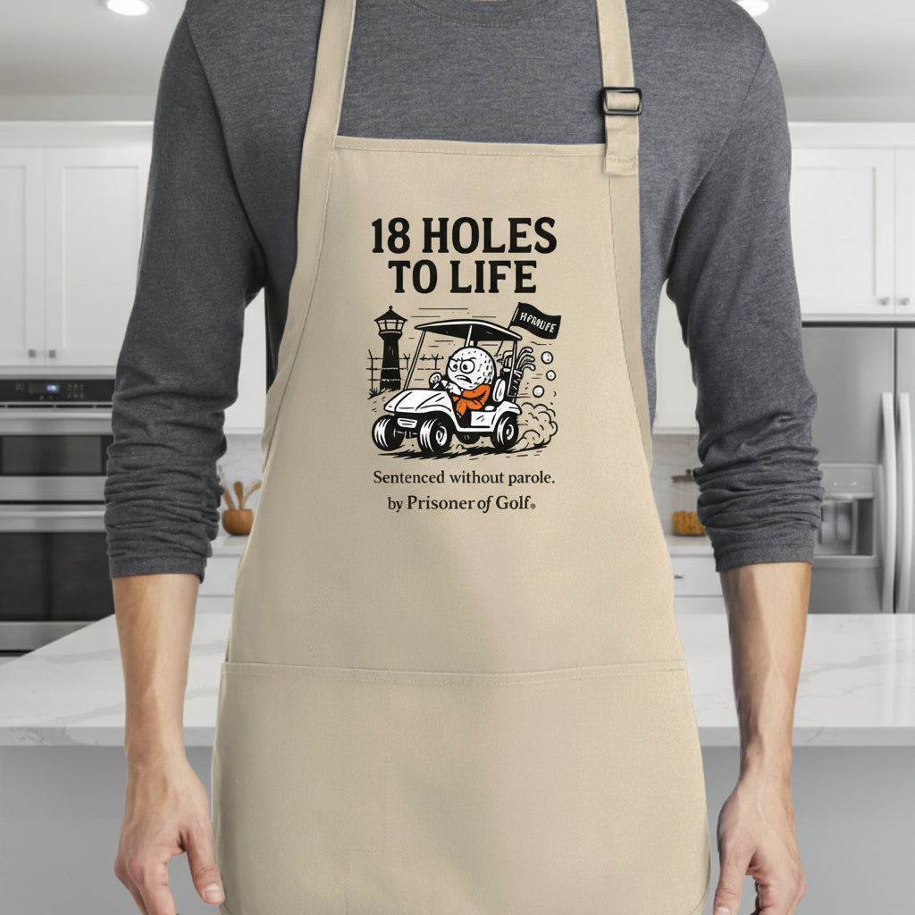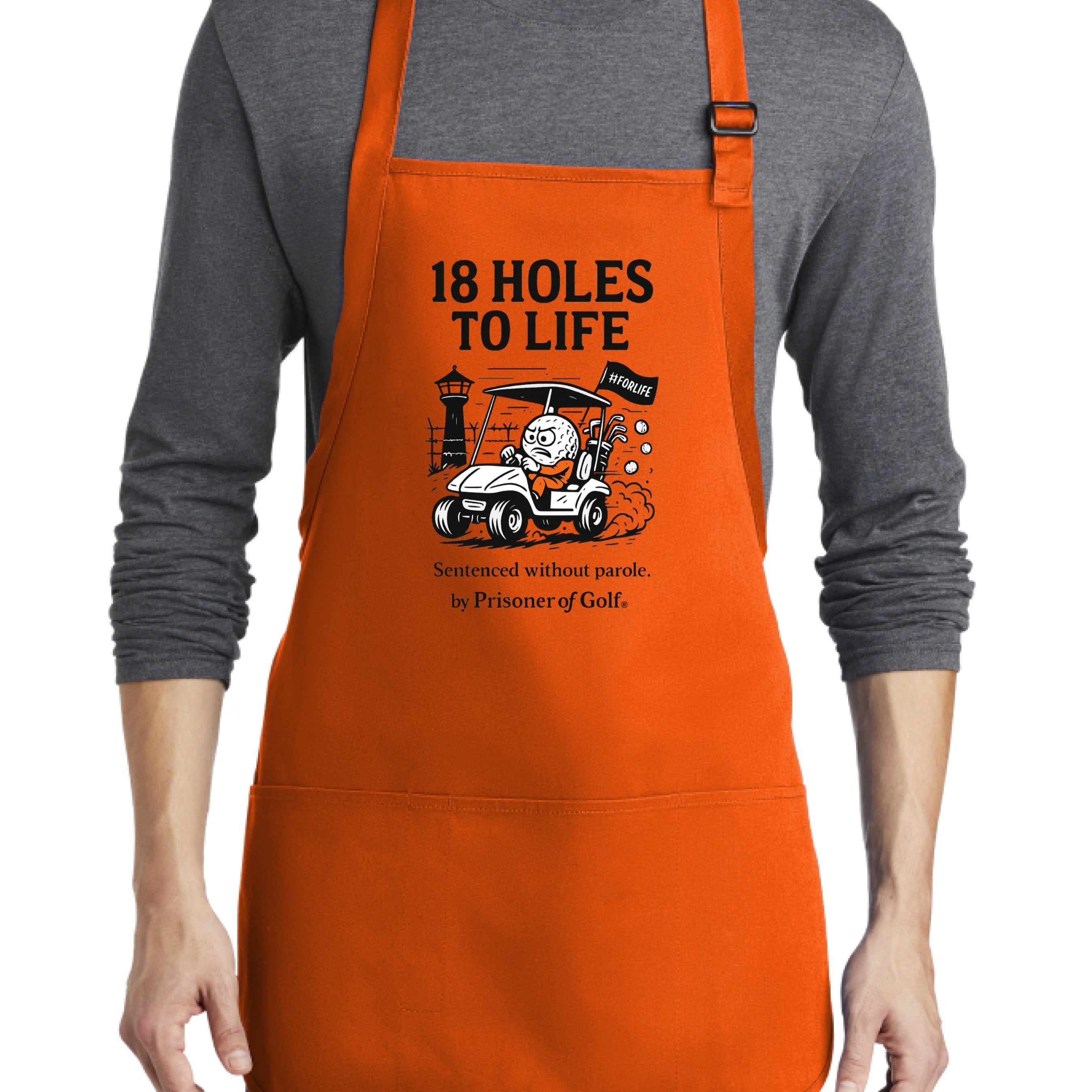Prisoner of Golf® “18 Holes to Life” Apron — Proudly Serving a Life Sentence in Golf (and the Kitchen)