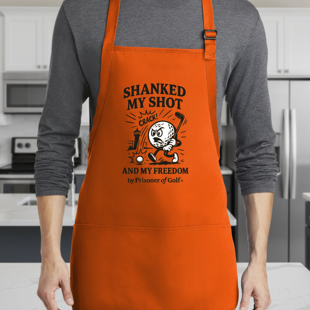 Prisoner of Golf® “Shanked My Shot” Apron — For the Golf Chef Who Also Misses the Pan