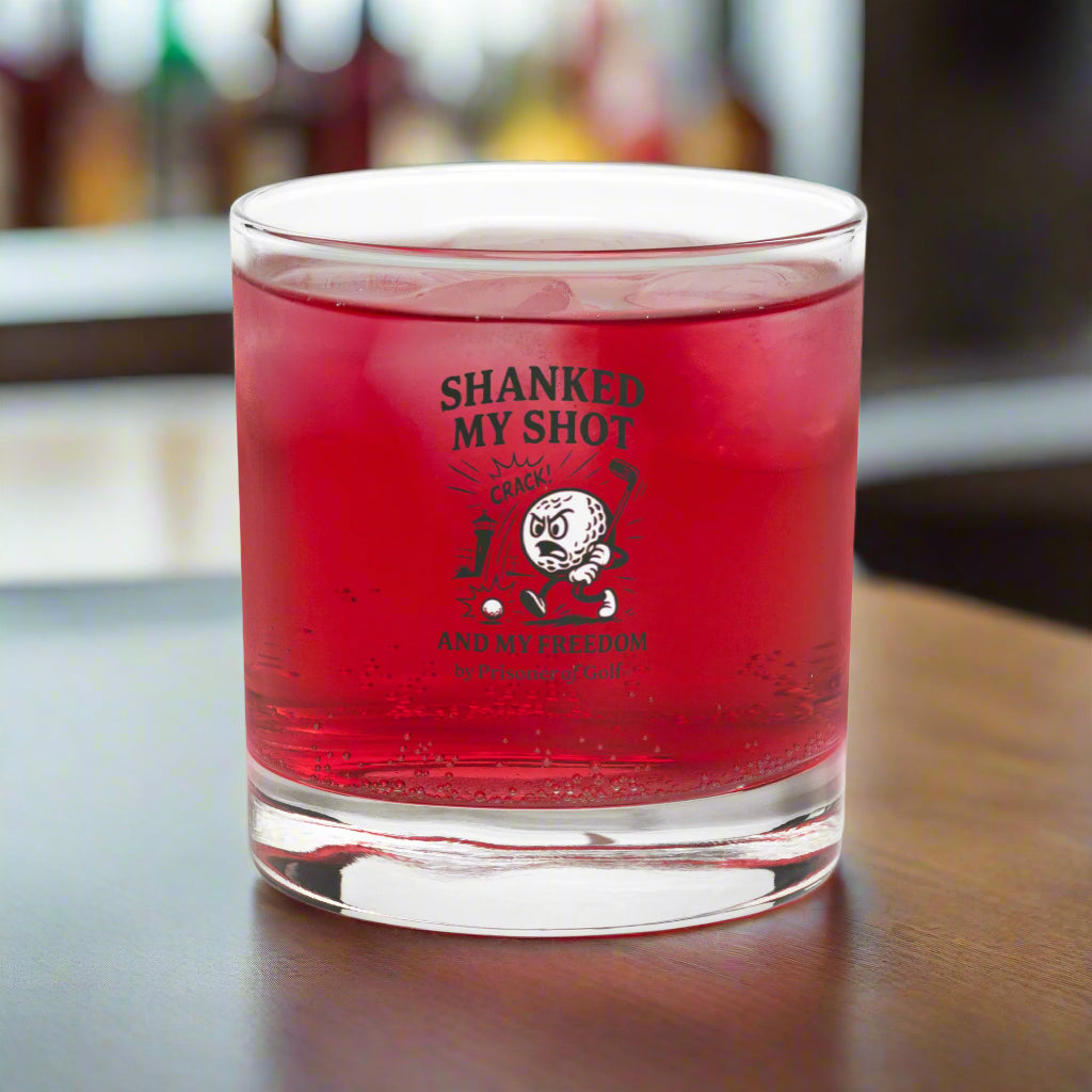 🎯 Shanked My Shot – Prisoner of Golf® Rocks Glass (10.5 oz)